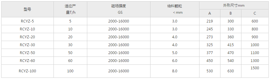 RCYZ型垂直管道式永磁除鐵器是一種以永磁材料產生強大磁場吸引力的節能型設備,內部采用釹鐵硼材料組成的環狀磁系,圓錐形體,結構合理,磁場強度高。可與固態原料輸送設備連接,活動式門扣,清除鐵質方便,適用于食品、面粉、陶瓷、化工、水泥、建材、石英砂等行業各類固態小顆粒和粉末狀物料中除鐵。