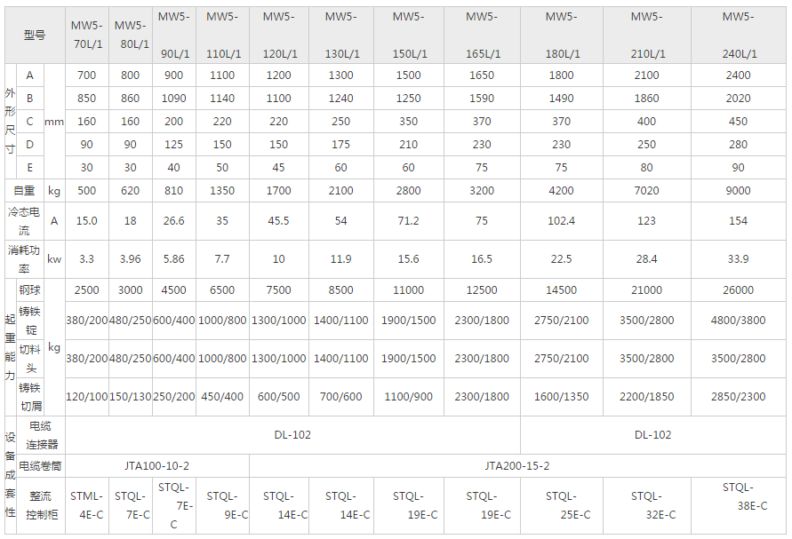 MW5型起重電磁鐵采用全密封結(jié)構(gòu),防塵、防潮性能良好。勵(lì)磁線圈經(jīng)特殊工藝處理,絕緣材料耐熱等級(jí)達(dá)到c級(jí),提高了線圈的電氣和機(jī)械性能,延長了使用壽命。安裝、維護(hù)簡便,運(yùn)行可靠。適用于冶金、礦山、機(jī)械制造,交通運(yùn)輸?shù)刃袠I(yè)吊運(yùn)鋼鐵等磁性物料。
