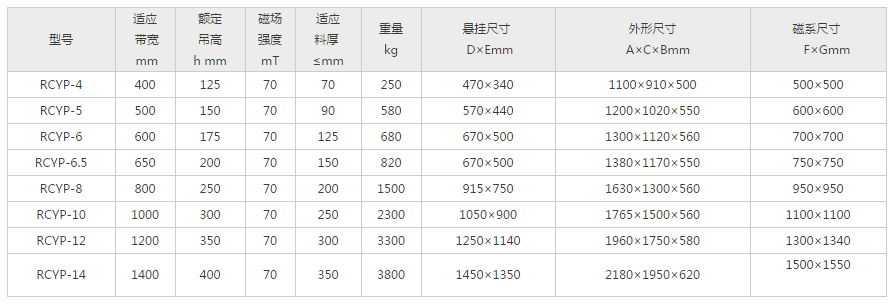 應(yīng)用范圍: 輸料皮帶窄,物料薄,含雜鐵少的場合