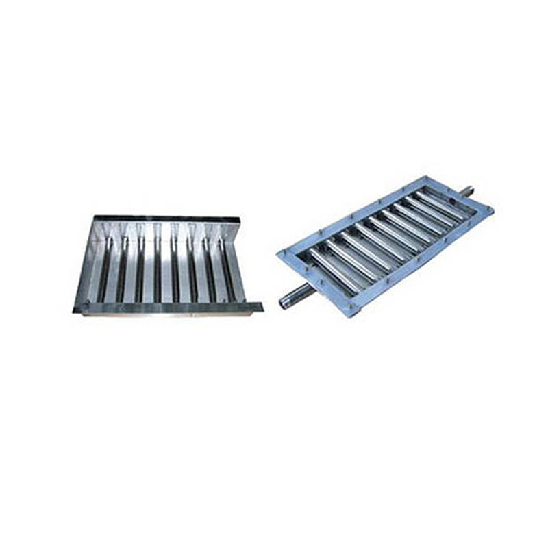 溜槽式除鐵器是將采用由優質無縫不銹鋼管和高性能稀土合金釹鐵硼,并采用特殊的制作方法制作而成的磁棒,安裝在由優質不銹鋼構成的溜槽中,構成磁性過濾器。當含鐵的液體或漿料或干粉物質通過時,受到強力磁棒的吸引,將含鐵的物質牢固的吸附在磁棒上,以達到除鐵的目的,保證產品的安全。